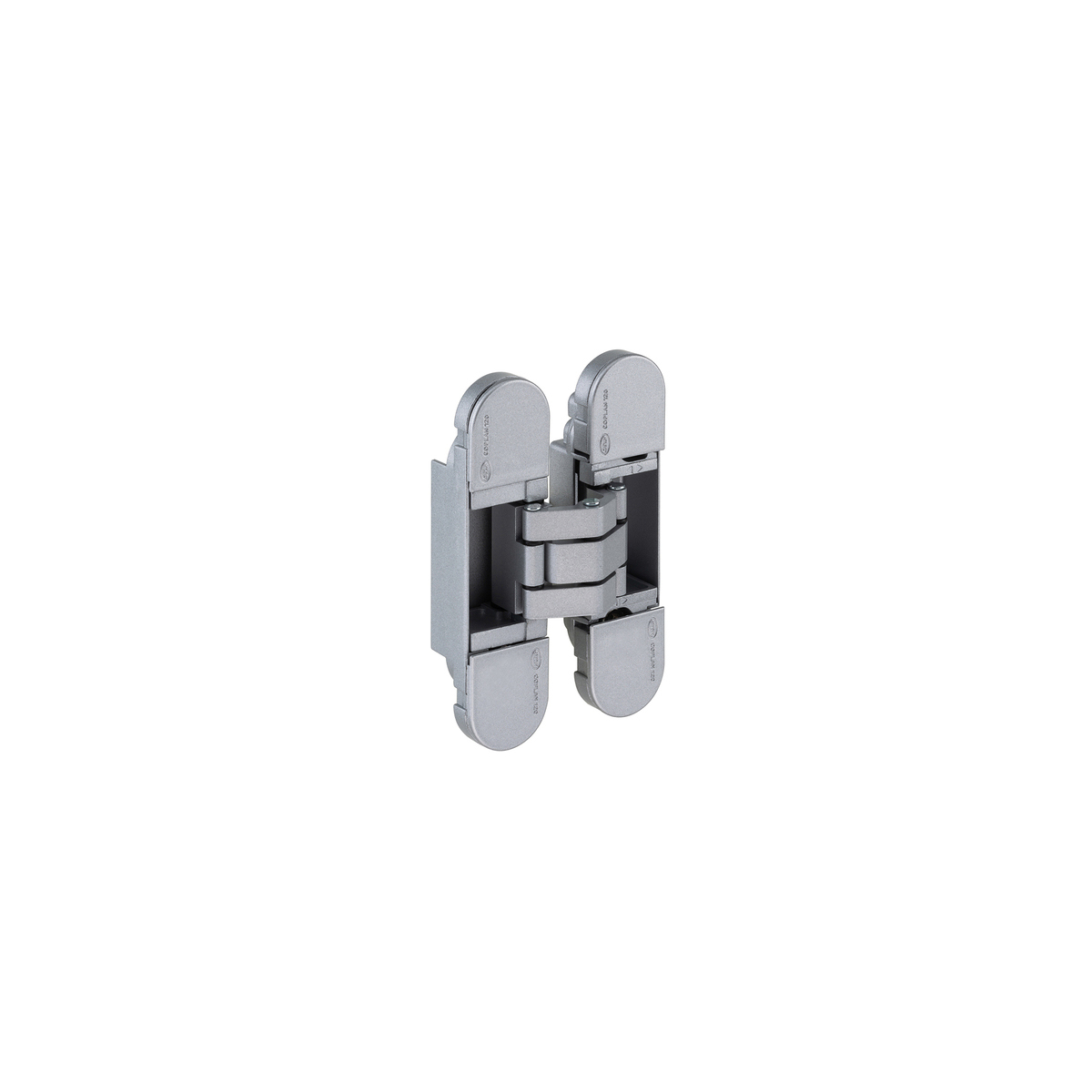 Bisagra oculta de alto rendimiento perteneciente a la Coplan Series, diseñada para puertas interiores de madera que requieran un acabado completamente limpio y sin herrajes visibles. Fabricada en aluminio y zamak, con acabado Gris RAL 9006, esta bisagra combina diseño moderno con precisión técnica.