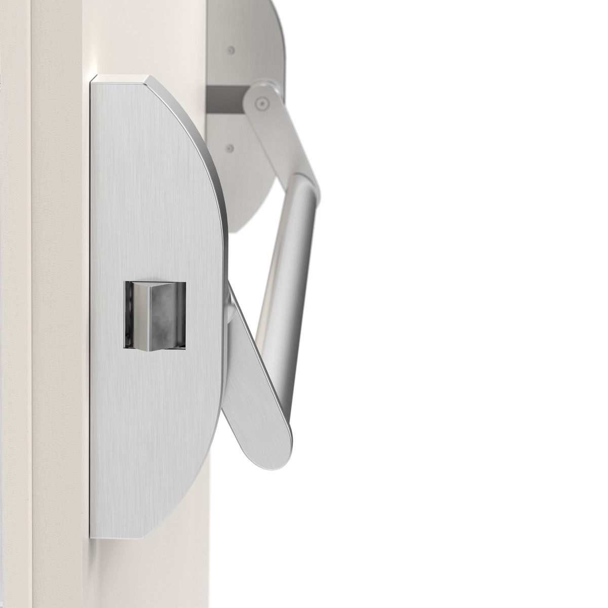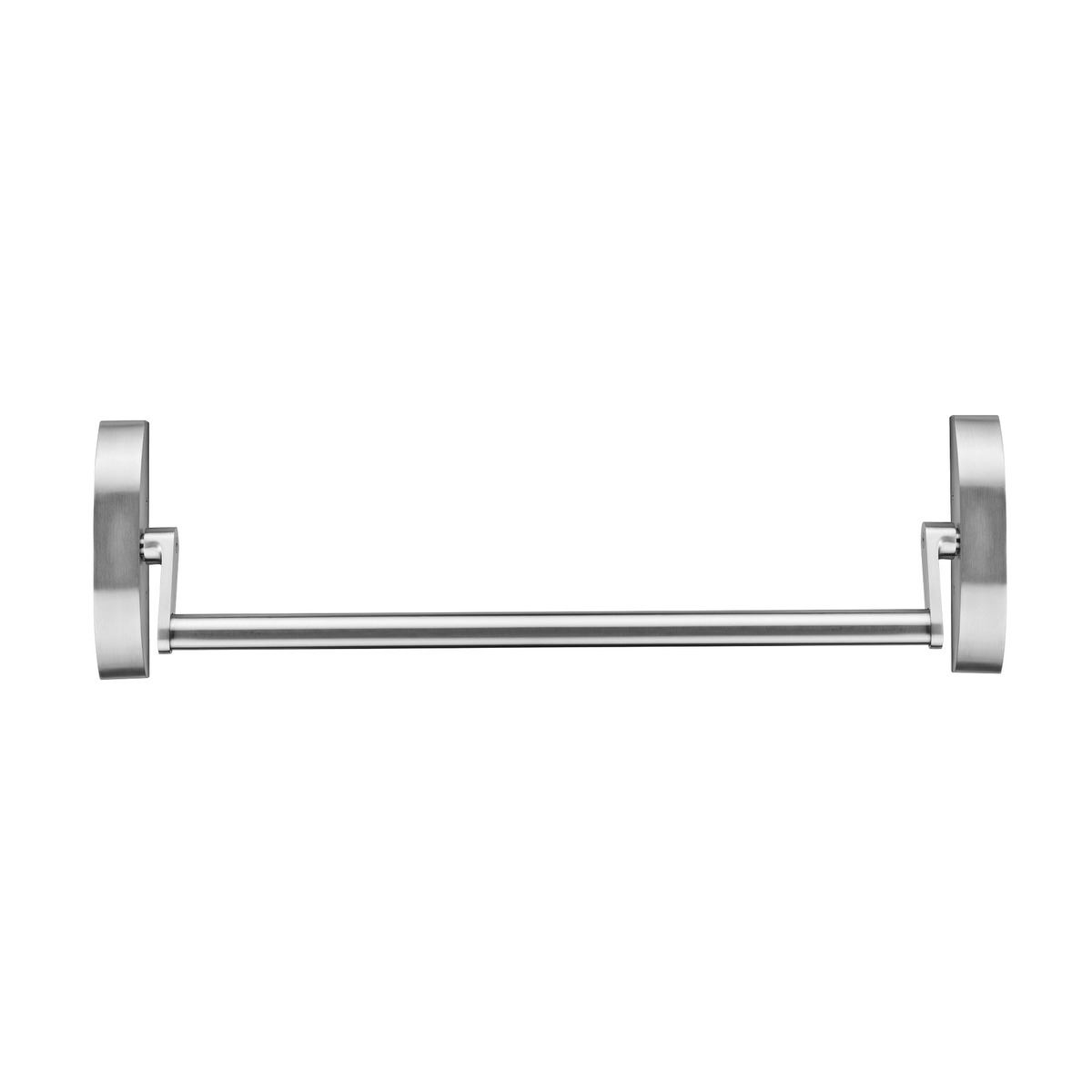 Cerradura diseñada para aplicaciones antipánico en puertas de una hoja, fabricada en acero inoxidable EN 1.4301 (AISI 304), con acabado satinado que garantiza durabilidad, resistencia a la corrosión y una apariencia sobria ideal para entornos institucionales y comerciales.