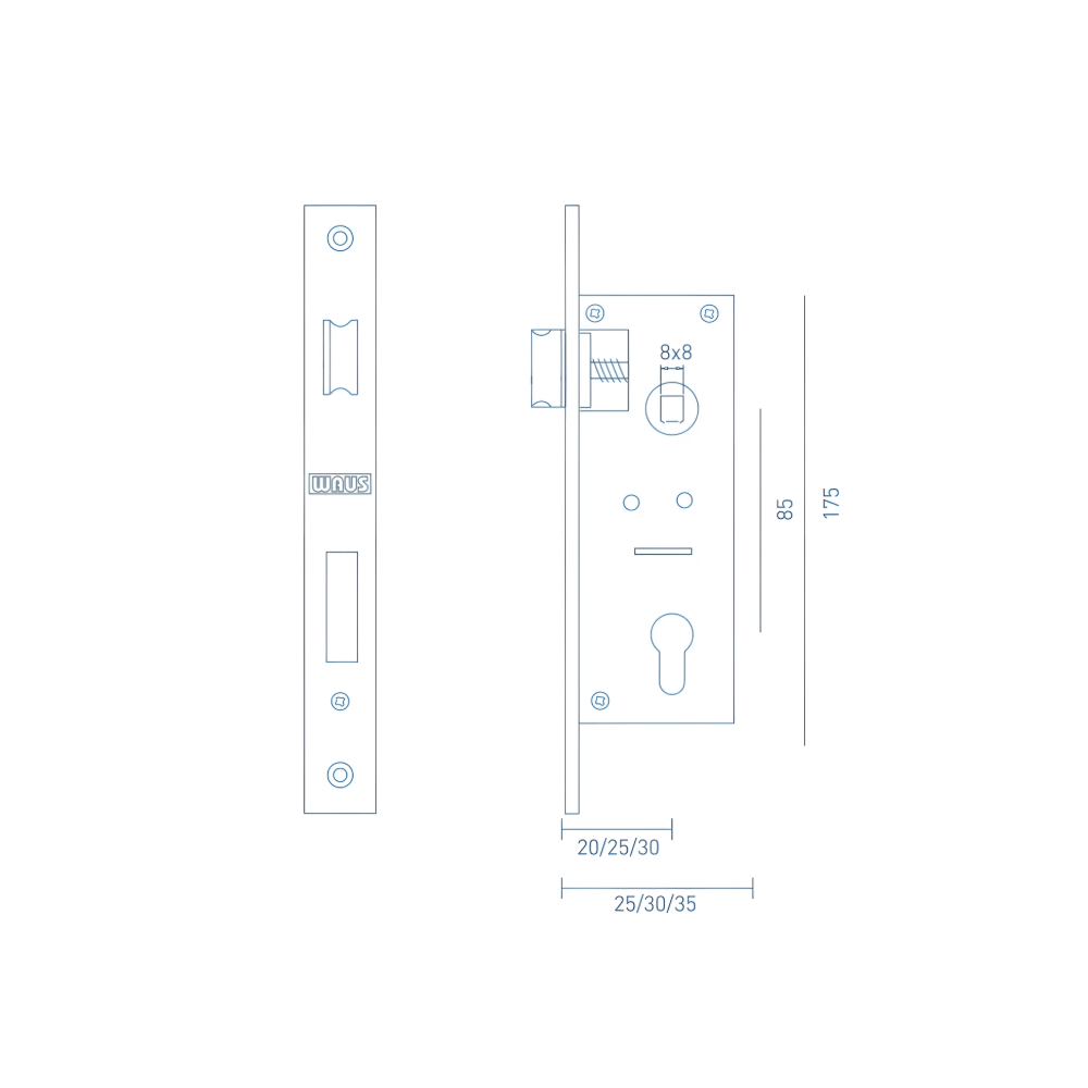 Cerradura para perfil estrecho de 20 mm – línea WAUS de JNF, diseñada especialmente para puertas con marcos de aluminio o estructuras de reducido espesor. Su formato compacto permite una integración eficiente en perfiles estrechos, manteniendo un funcionamiento preciso y confiable. Ideal para proyectos comerciales y residenciales que requieren soluciones discretas y funcionales.