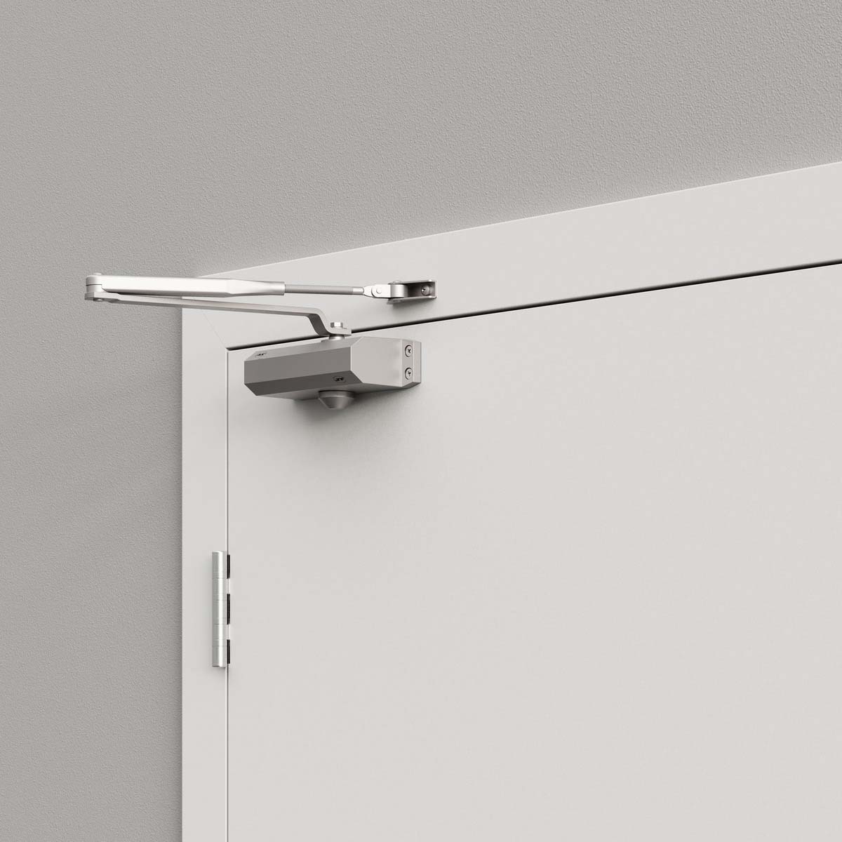 Fabricado en aluminio con acabado Gris RAL 9006, este modelo ofrece una fuerza ajustable de 2 a 4, regulable por posición, adaptándose a distintos tipos de puertas y niveles de uso. Su mecanismo de piñón y cremallera permite un movimiento suave, mientras que las válvulas independientes ajustan la velocidad de cierre y el golpe final. Admite una apertura de hasta 180° y es totalmente reversible.