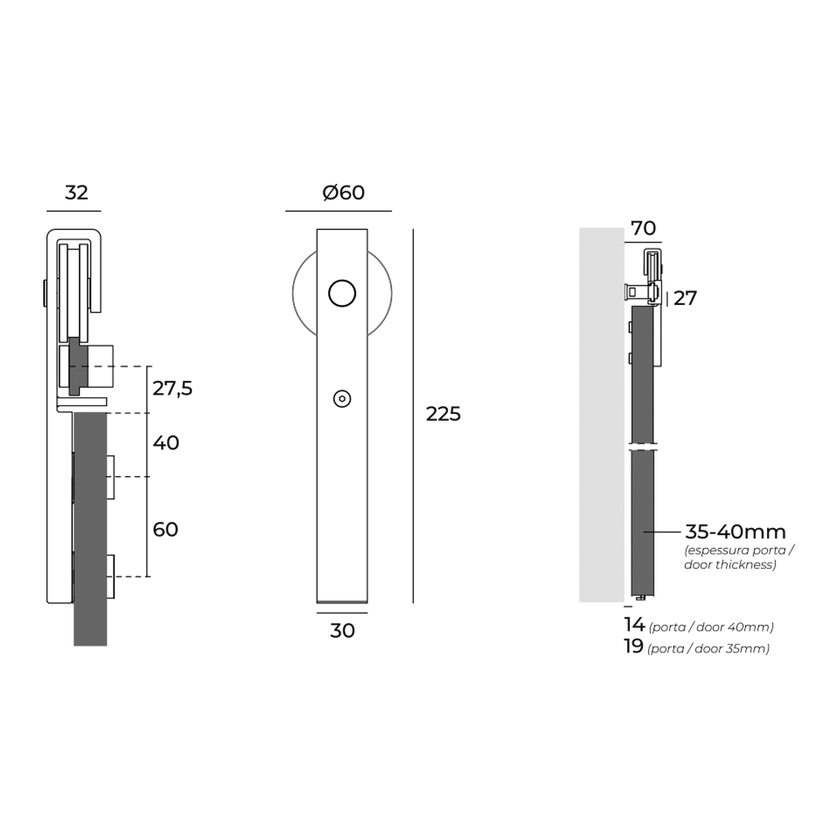 Sistema de puertas correderas de fijación mural, diseñado para hojas de madera o metálicas de hasta 60 kg. Fabricado en aluminio anodizado, combina resistencia estructural con un diseño minimalista y moderno. El sistema incluye ruedas de nylon con fibra de vidrio y rodamientos de bolas, lo que garantiza un deslizamiento suave, silencioso y duradero. Ideal para interiores residenciales o comerciales que buscan una solución funcional y estética.