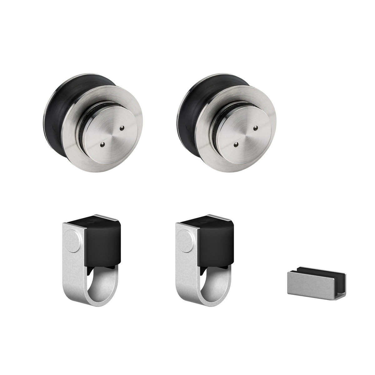 Sistema modular de deslizamiento para puertas de ducha en vidrio, perteneciente a la línea Clear System de JNF. Diseñado para entregar un desplazamiento suave, silencioso y seguro, este kit ofrece una solución estética y funcional para duchas modernas.