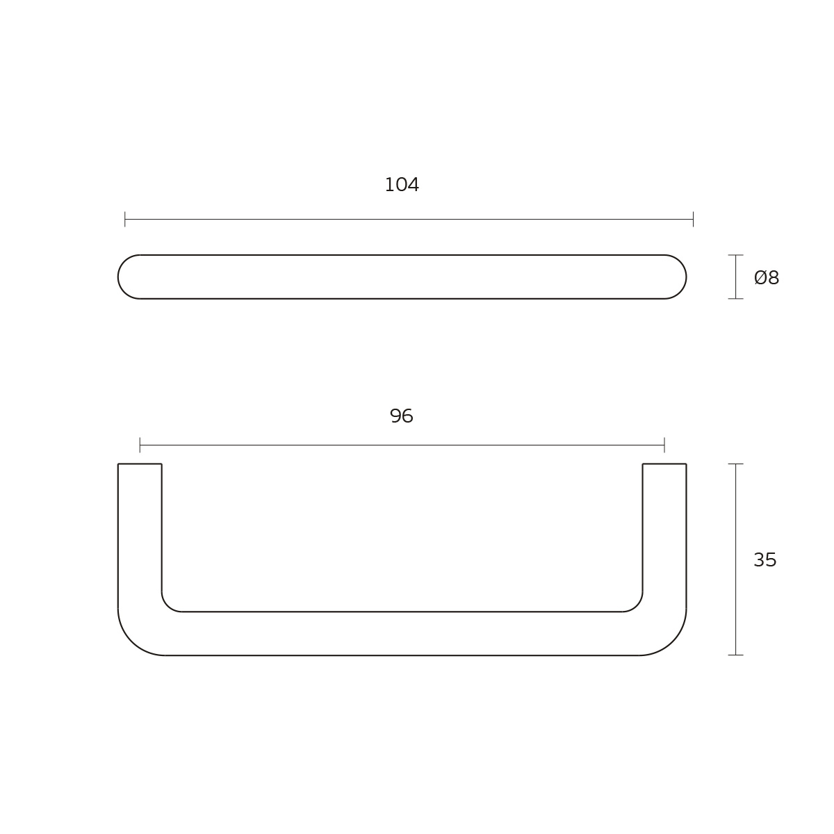 Tirador de mueble serie Tubular Ø8, fabricado en acero inoxidable AISI 304 con acabado satinado. Ideal para aplicaciones en muebles de cocina, baño o mobiliario general.
